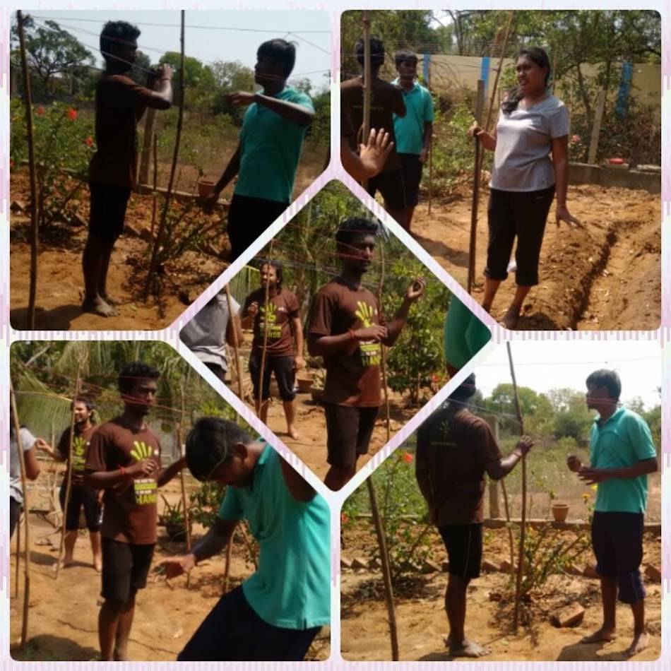 Prasanna along with others also prepared a small space with bamboos and strings that can provide support to creepers like snake gourds, bottle gourds etc.